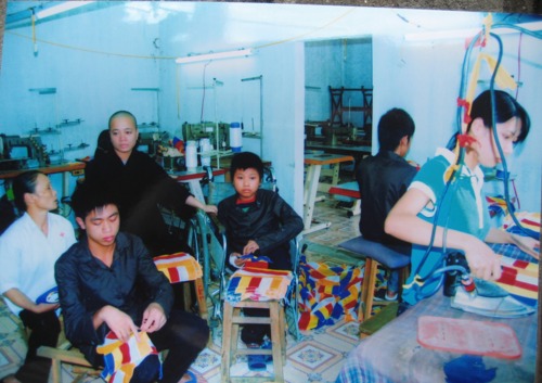 Tiếp chuyện với tôi sư Thầy cho hay: “nếu chỉ mình tôi thì không làm nên cơ ngơi này đâu, cũng may là có các Phật tử hảo tâm nhiệt tình đóng góp công của, các giáo viên tận tình hướng dẫn vv... các chùa trong thành phố vì thương tình nên “tiêu thụ “ sản phẩm giúp chứ lắm khi nhìn nguồn hàng đã may xong cứ chất chồng, chất đống mà chưa có đầu ra cũng lo lắng đến mất ăn, mất ngủ”.