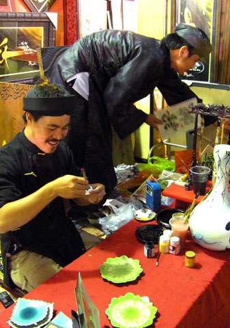 | Những câu thơ về cha mẹ được viết nhiều trên đá, gốm để khách mua về tặng cha mẹ nhân ngày tết. |