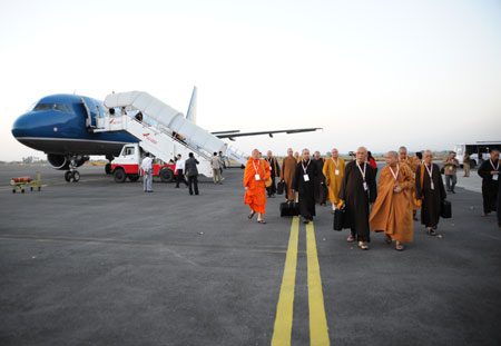 Thông tin về việc Việt Nam đưa hẳn chuyên cơ đến cung nghinh Xá lợi Phật Thích Ca làm nức lòng các tăng ni, Phật tử trên nước Ấn. Các hòa thượng từ khắp nơi trên đất Ấn không ai bảo ai đã có mặt chờ đoàn từ rất sớm.