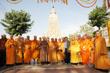 Buổi lễ cung nghinh Xá lợi Phật diễn ra rất xúc động trong vòng 30 phút ngay cạnh tháp Đại giác ngộ, dưới gốc cây đại bồ đề nơi Đức Phật Thích ca thành đạo cách nay hơn 2000 năm (Ảnh: Võ Văn Tường)