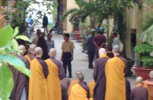 Côn đồ gây rối ở Chùa Phước Huệ, nơi các tăng sinh tạm lánh nạn hôm 9-12-2009.