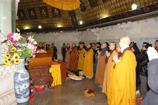 Chư Tôn Đức cùng đoàn Phật tử Việt Nam nhân dịp cung thỉnh Giới Bổn tại Chung Nam Sơn đã đến đảnh lễ và kinh hành trong địa cung nơi Tôn phụng Phật Chỉ Xá Lợi
