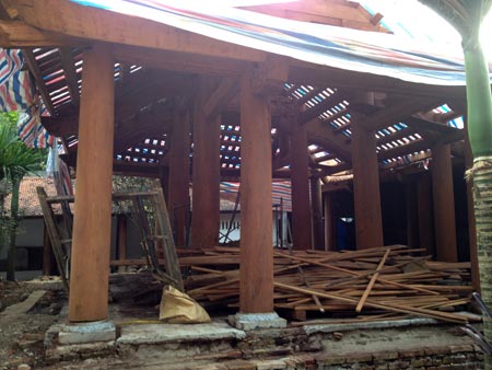 Quá sốt ruột vì sự xuống cấp của gác Khánh nên ngày 1/6 âm lịch vừa qua nhà chùa đã tự ý tu sửa. Sư thầy đã sang tận Lào để mua gỗ lim Lào về dựng cột. Sư thầy bảo một cây gỗ lim Lào này xẻ làm 4 cột gỗ. Chúng tôi hỏi về kinh phí để trùng tu tôn tạo lại nhà Tổ và gác Khánh thì sư thầy tránh không trả lời mà chỉ nói, thầy có rất nhiều các Phật tử ủng hộ, Phật tử trong nước và cả ở nước ngoài đều sẵn lòng muốn góp công đức cho nhà chùa trong việc tu sửa.